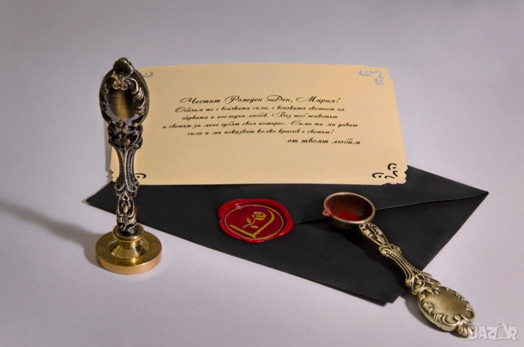 - Плик с восъчен печат с ваше послание напечатано на арт хартия с красив ръкописен шрифт - 8 €