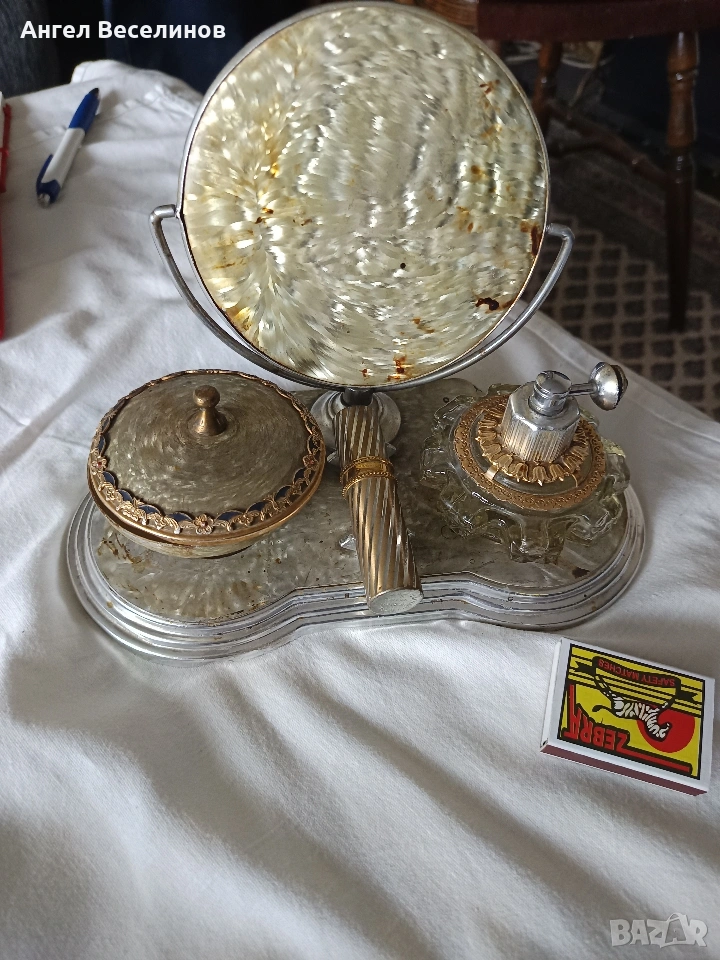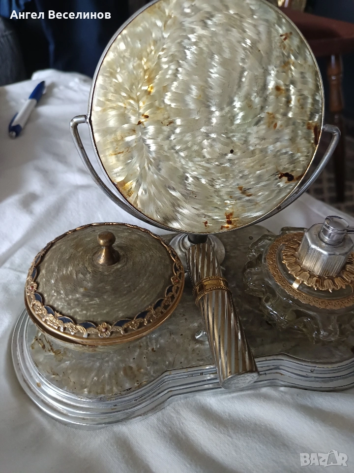 ретро комплект за тоалетка от средата на 20 век, снимка 1 - Антикварни и старинни предмети - 54060198 ретро комплект за тоалетка от средата на 20 век, снимка 2 - Антикварни и старинни предмети - 54060198 ретро комплект за тоалетка от средата на 20 век, снимка 3 - Антикварни и старинни предмети - 54060198 ретро комплект за тоалетка от средата на 20 век, снимка 4 - Антикварни и старинни предмети - 54060198 ретро комплект за тоалетка от средата на 20 век, снимка 5 - Антикварни и старинни предмети - 54060198 1/5