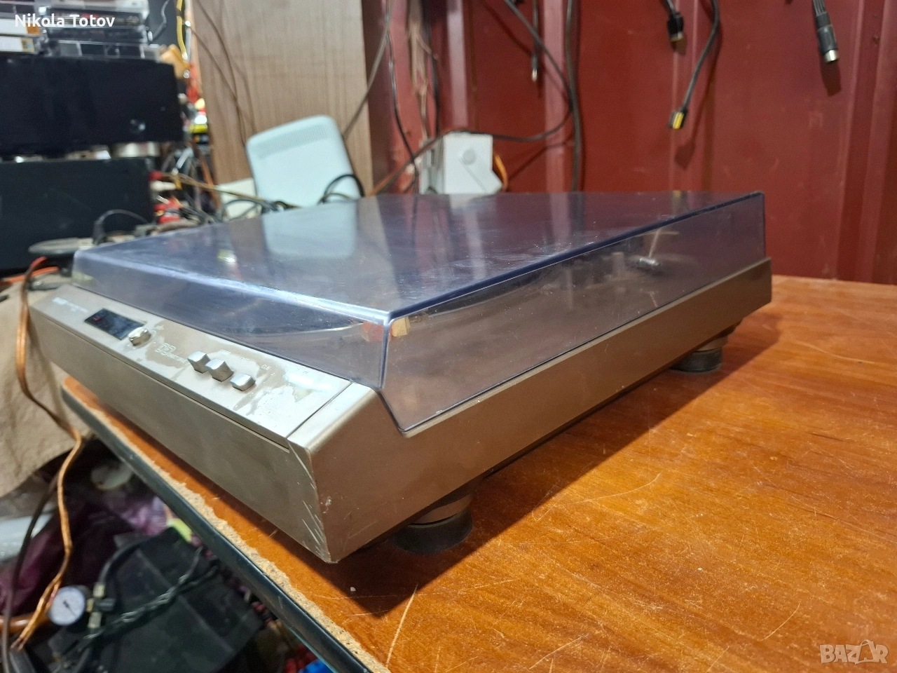 Продава се грамофон Sharp RP-30. Работещ. Връща рамото сам. Липсва едната панта за капака. При интерес мога да пратя клип как работи . Състоянието се вижда на снимките. Намира се в Пловдив. Цена 70 евро. За повече информация и снимки ми пишете на лс или звъннете на посочения номер 089 692 8376.