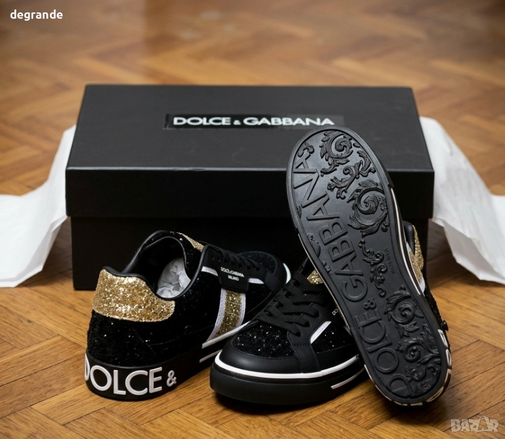 Дизайн: Уникална комбинация от премиум черна кожа и наситени златни акценти с брокатен завършек.
