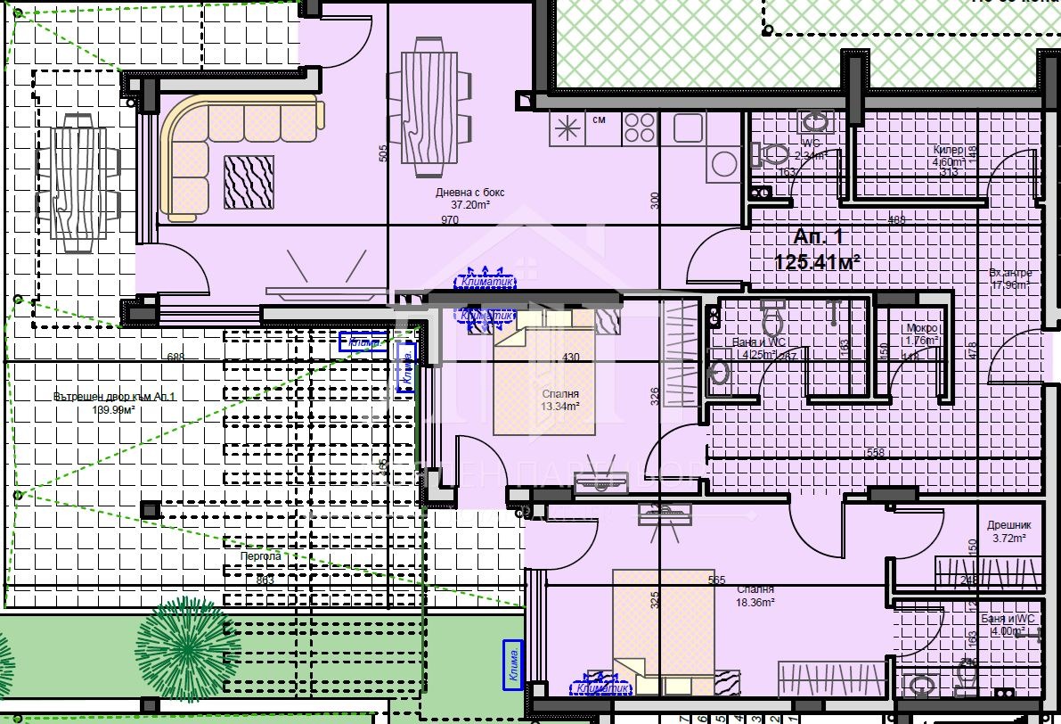 Тераса-градина (140 кв.м): Вашето лично небесно пространство, което обгръща целия апартамент и предлага необятни възможности.