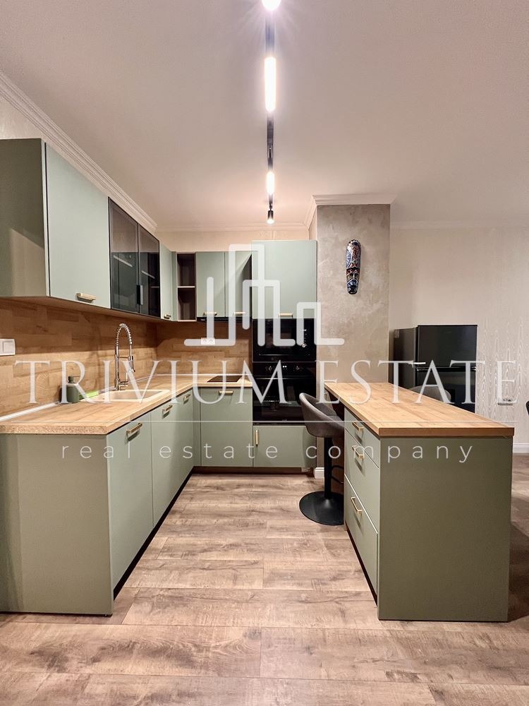 Апартаментът е напълно обзаведен и оборудван с висок клас електроуреди. Интериорът е съвременен, с внимание към детайла и удобството. Жилището е готово за нанасяне.