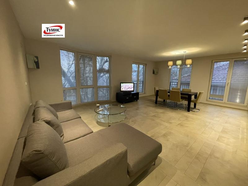 Агенция ТУИНС предлага ексклузивно на Вашето внимание супер луксозен тристаен апартамент - 150кв.м., в супер център, до Градската градина. Разпределение - просторен хол с трапезария и кухненски бокс - 50кв.м., 2 големи спални, 2 бани и тоалетни, тераса. Жилището е обзаведено с италиански мебели, маркови електроуреди. Кооперацията е нова, към апартамента има възможност да се наеме гараж - 70Е или паркомясто - 50Е/месечен наем.