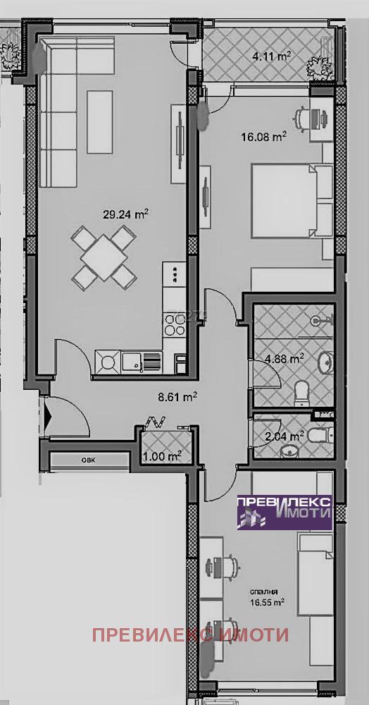 Оферта 1-4197, Сградата ИМА АКТ 16. Предлагаме Ви апартамент в нова луксозна кооперация. Комуникативна и удобна локация с бърз достъп до централен булевард. В близост училище, детска градина и магазини. Квартала е предпочитан за живеене заради добрата инфраструктура, търговски комплекс на пешеходно разстояние и други удобства - заведения за хранене и напитки, зеленчуков пазар, аптеки. Разпределение на помещенията на посочения апартамент: дневна с кухненски бокс,две спални, баня с тоалетна и отделна тоалетна, перално помещение, антре. Степен на завършване: стени и таван - шпакловка, под - циментова замазка, ВиК до тапа, ел. инсталация до фасунга и ключ, PVC дограма и блиндирана входна врата. Възможност за закупуване на гараж. Препоръчваме това жилище при избора Ви на нов дом или като подходящ инвестиционен инструмент. Гарантираме, че ще получите необходимото внимание и компетентно съдействие. Ние ще Ви предложим професионално отношение и индивидуален подход към нужди Ви. Вашето доверие това е главното, към което се стремим в работата ни с КЛИЕНТА. За нас не е достатъчно просто да Ви предложим имот, а чрез индивидуален подход да сме максимално полезни в търсенето на най-доброто решение за Вас. Ние работим с голям кръг от инвеститори, строители и колеги и правим всичко възможно за да покрием с максимално изчерпателна информация и оферти зададените от Вас критерии. За повече подробности сме на разположение на тел.: 0887900445; http://previlex.imot.bg