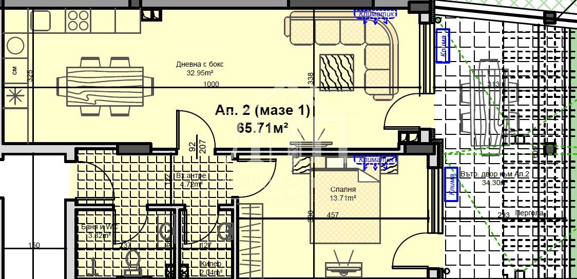 Функционалност: За разлика от стандартните новостроящи се жилища, тук е помислено за съхранението. Спалнята (13.71 кв.м) с излаз към верандата. Имота разполага със собствен килер, а прилежащото мазе осигурява допълнително удобство.