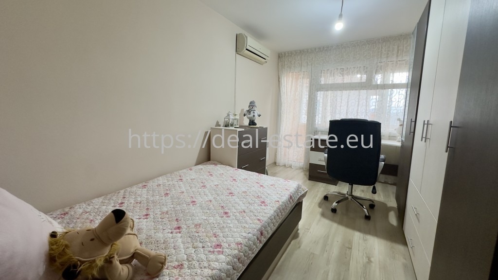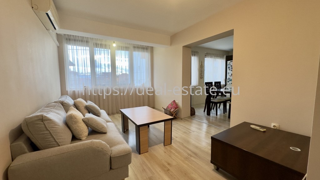 Тристаен апартамент под наем в широк център, гр. Благоевград, в близост до Стадиона. Жилището се състои от коридор, дневна с кухненски бокс, две спални, баня и санитарен възел, санитарен възел, мокро помещение и тераса. На разположение в дневната са трапезна маса със столове, мека мебел, телевизор, печка, хладилник, пералня и климатик. Спалня едно е оборудвана с комплект спалня и гардероб. Спалня две е обзаведена с легло персон и половина, гардероб, бюро и климатик. Обява 2171.Свободно от 15.04.2026 г.