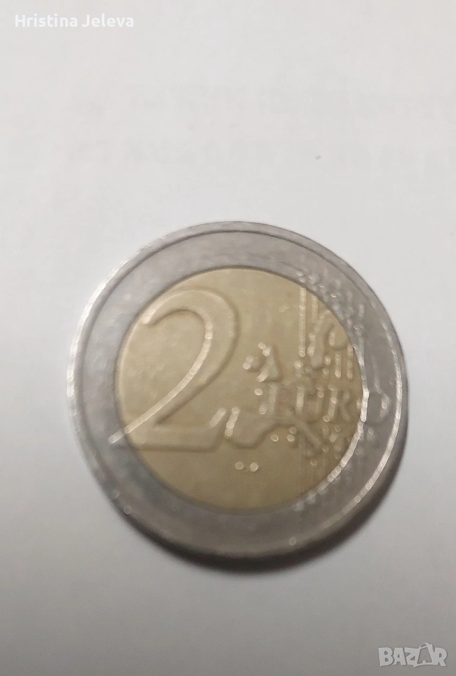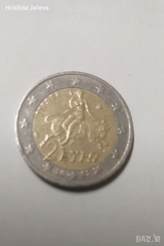 Монетата изобразява похищението на Европа от Зевс (превърнат в бик), както се вижда на снимките. Монетата има недостиг на метал на предния и задния крак...има и празно пространство между вътрешния и външния кръг...Думата ЕВРОПА не е подравнена...Автентична монета