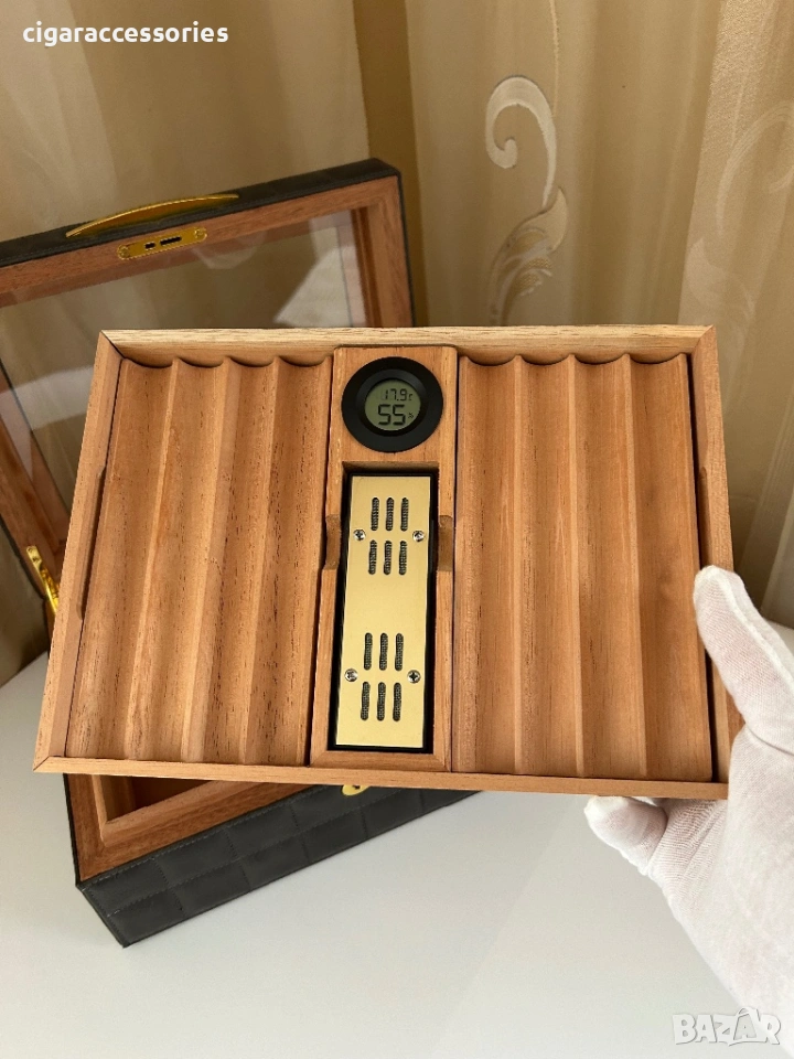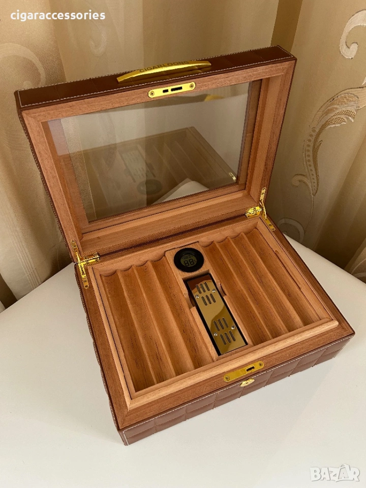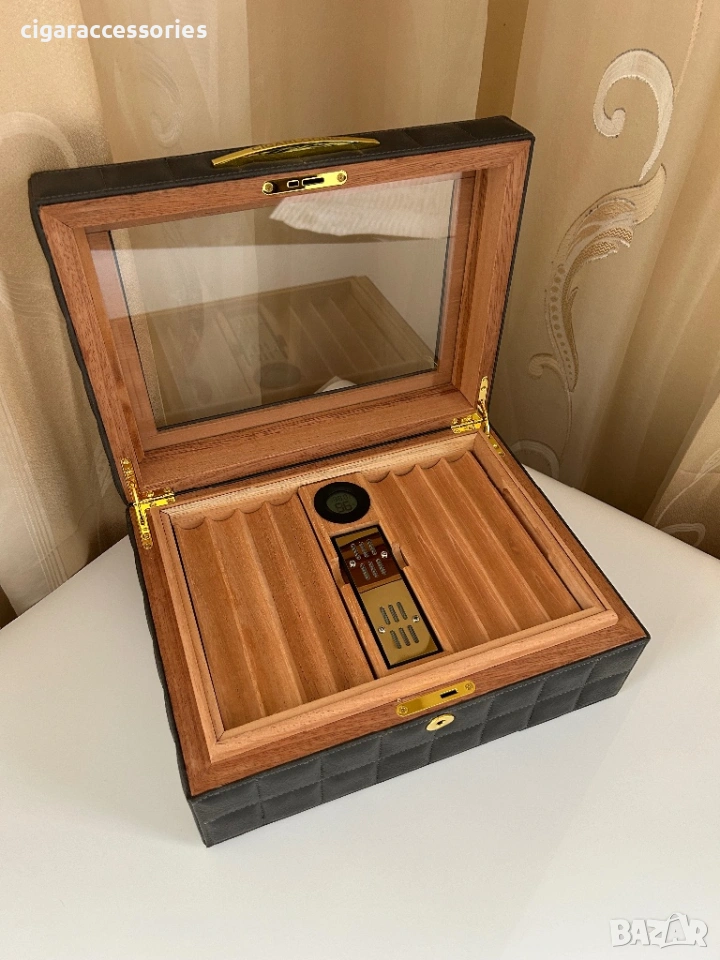 хумидор за пури, хумидор 50 пури, кедров хумидор, кожен хумидор, дигитален хигрометър, cigar humidor, кутия за пури