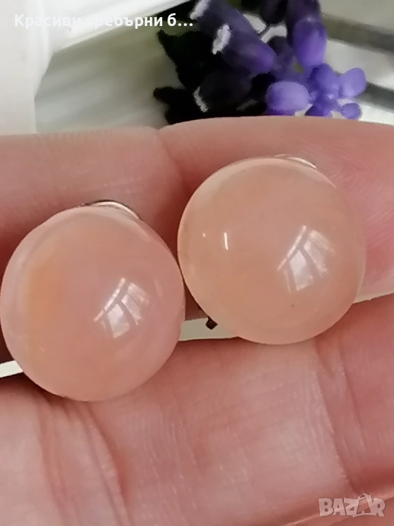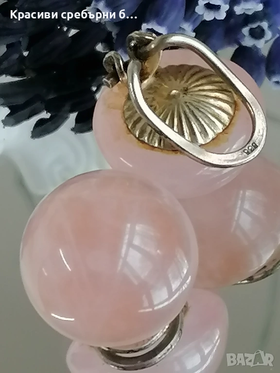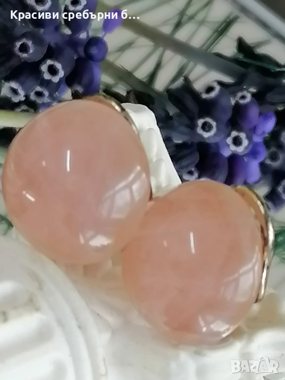 Масивни сребърни обеци с розов кварц и позлата → Обява 54061211