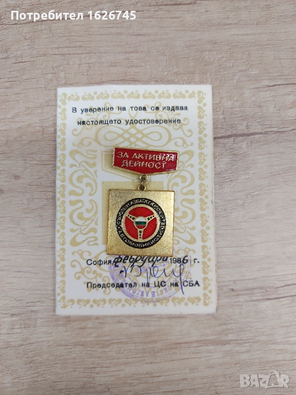 Колекционерска значка СБА (Съюз на българските автомобилисти) за активна дейност.