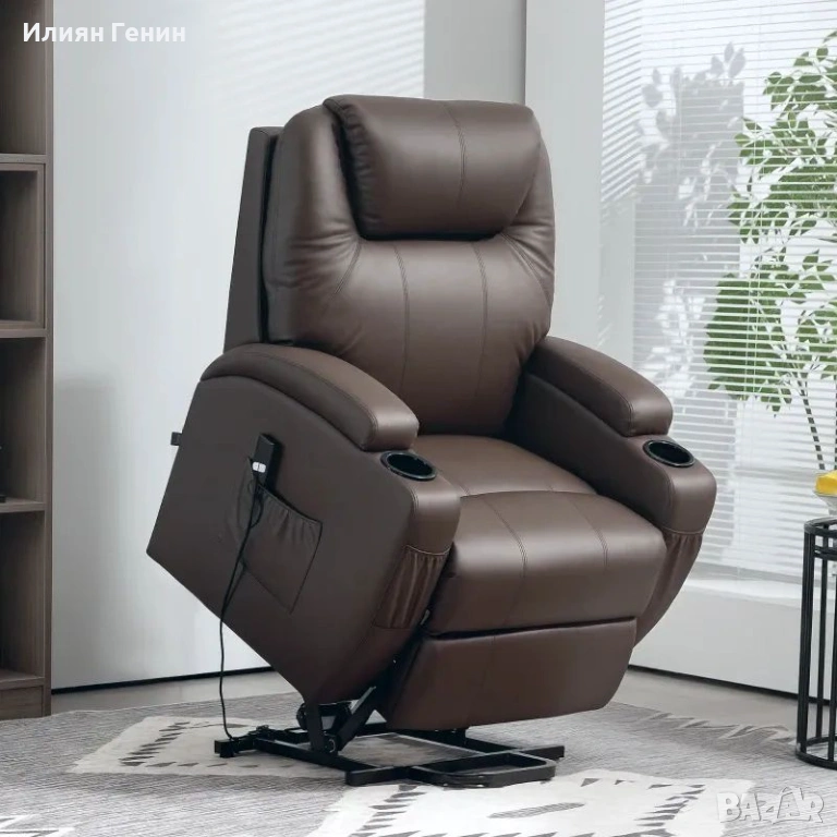 Повдигащ се стол HOMCOM, с регулируема облегалка и асистент за повдигане, вкл. дистанционно управление, поставка за чаши, регулируема облегалка, кафяв - 350.00 €.