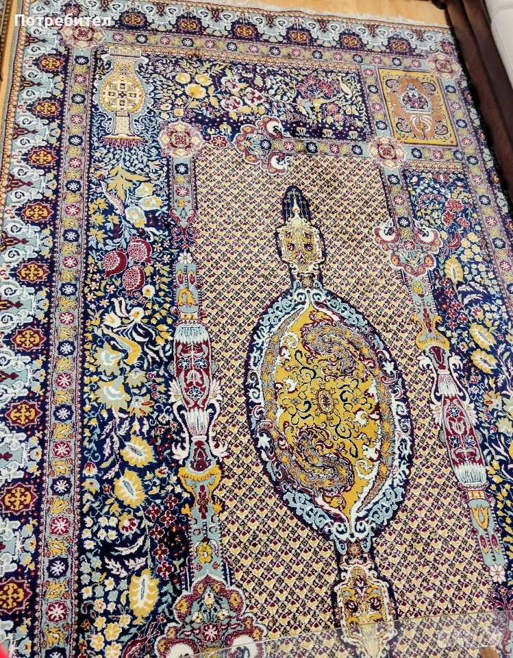 Красив и запазен персийски килим с богата орнаментика и детайлни шарки. Килимът е в добро състояние ,чист ,цели ресни.​Без петна, протривания или избледняване. ​Размери: 390 см (дължина) х 210 см (ширина)