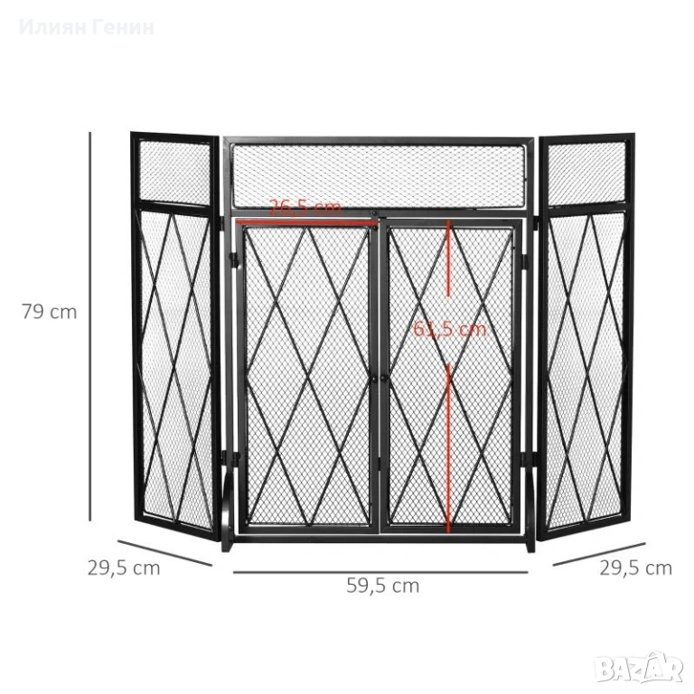 HOMCOM Защитен екран от искри, сгъваем, 3-частичен, 120 см x 79 см, черен - 60.00 €.