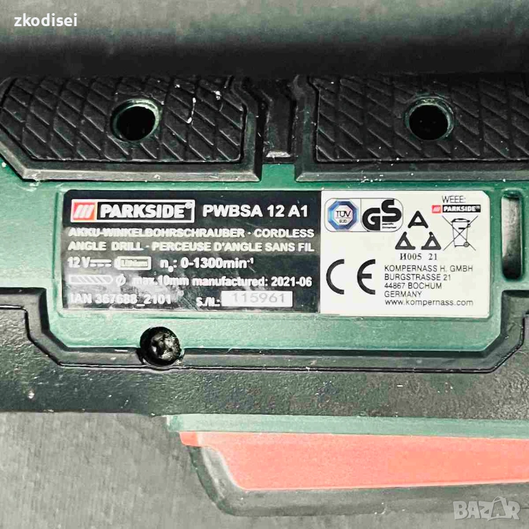 Ъглов акумулаторен винтоверт PARKSIDE PWBSA 12 A1 → Обява 54061592