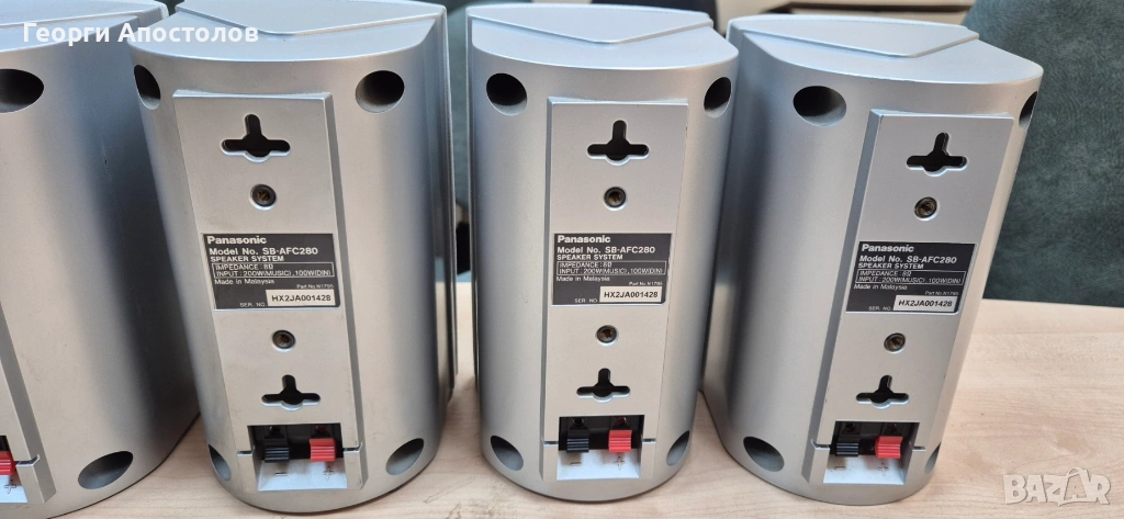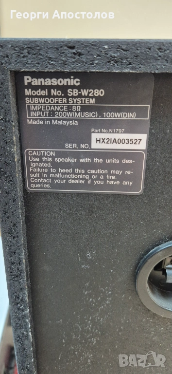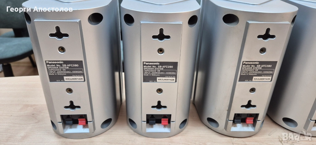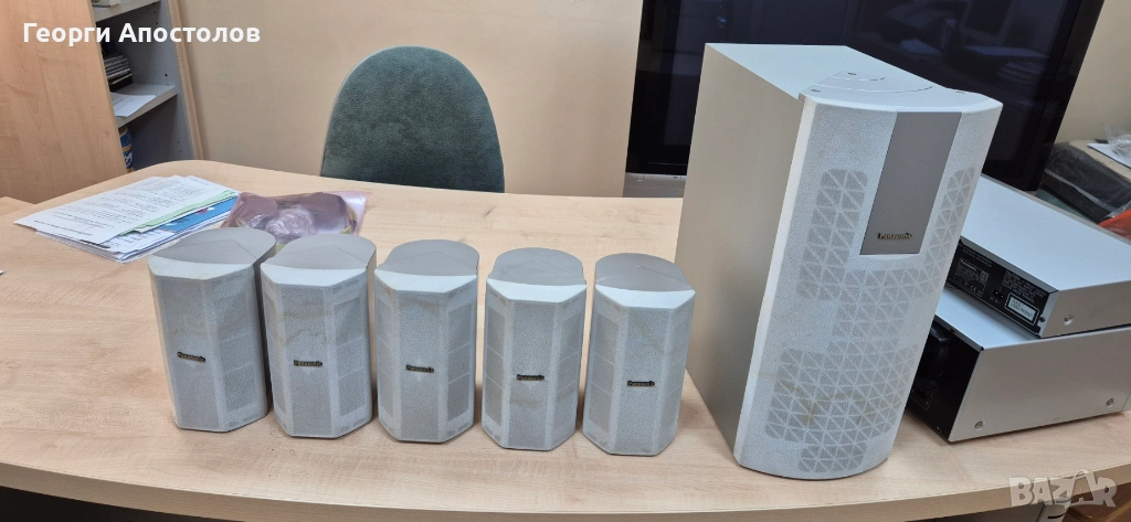 Продавам домашно кино Panasonic 5.1 - само тонколоните. 5 броя SB-AFC280 + 1 брой SB-W280. Работят без проблем. Имат си външни забележки за годините. Най-вече по предпазните решетки. Данните ги има на снимките. Предпочитам лично предаване.