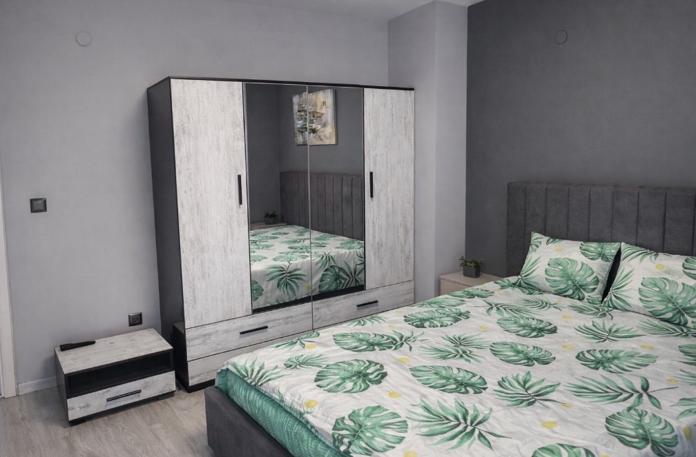 Имотът е обзаведен, с площ 78 кв.м, на 5-ти от 6 етажа в сграда с асансьор. Разпределението включва входно антре, хол с кухня и трапезария, спалня, баня с тоалетна и тераса.