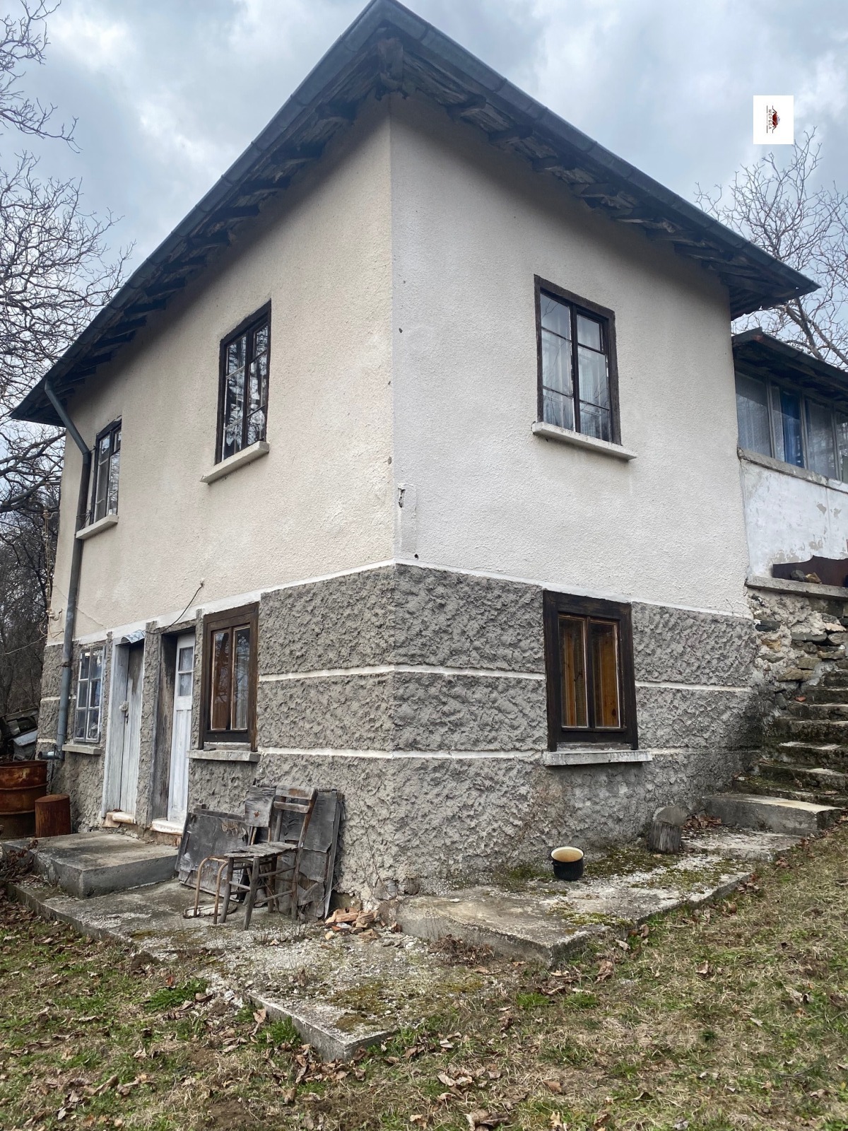 Разпределение: входно антре, две стаи и малко помещение, което е подходящо за обособяване на вътрешен санитарен възел.Има мазе и още една стая, която е в приземната част на къщата.