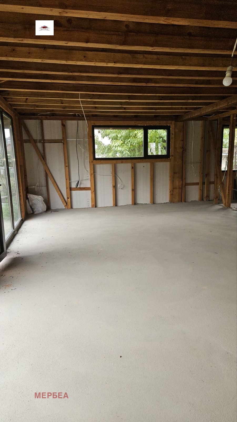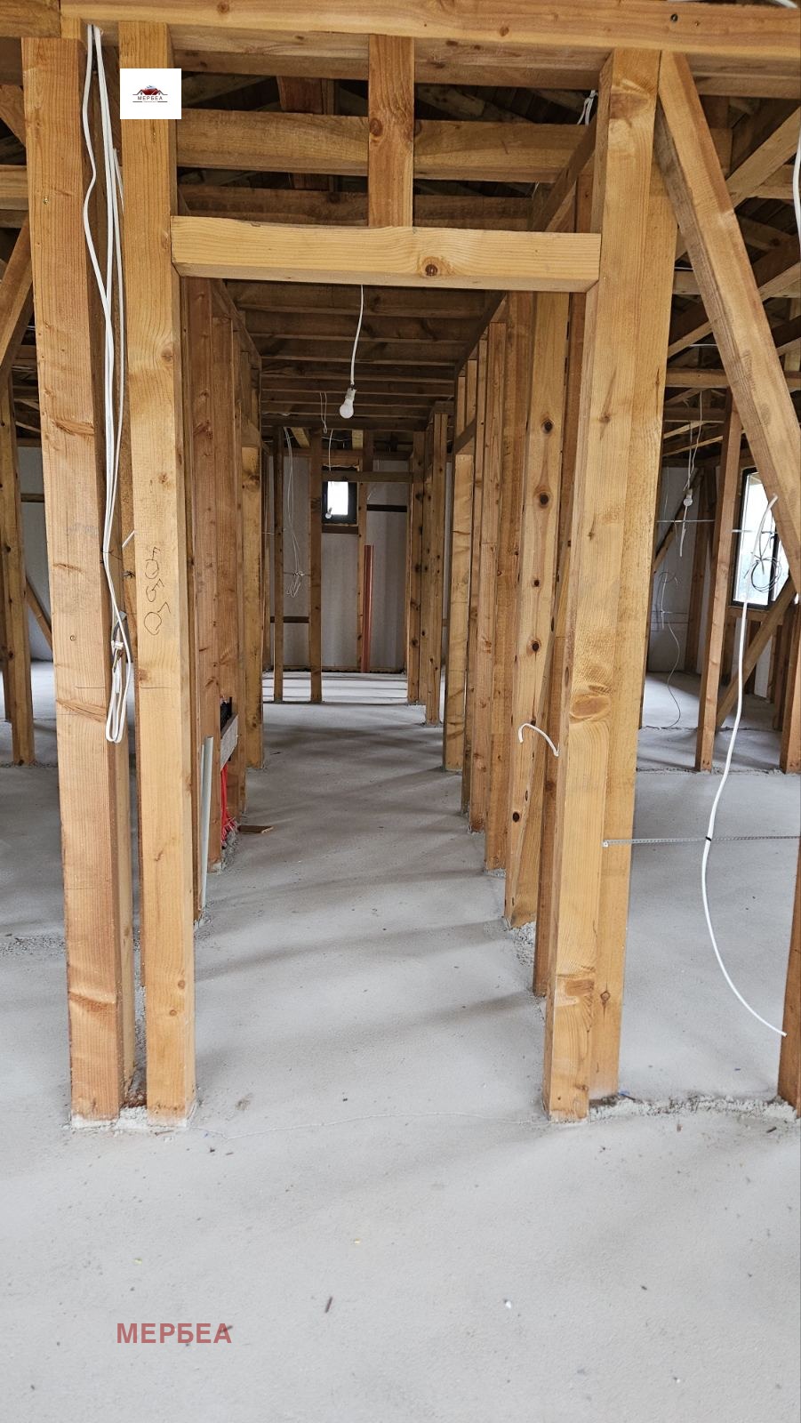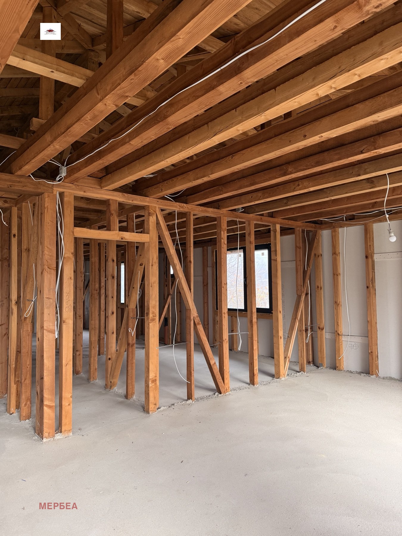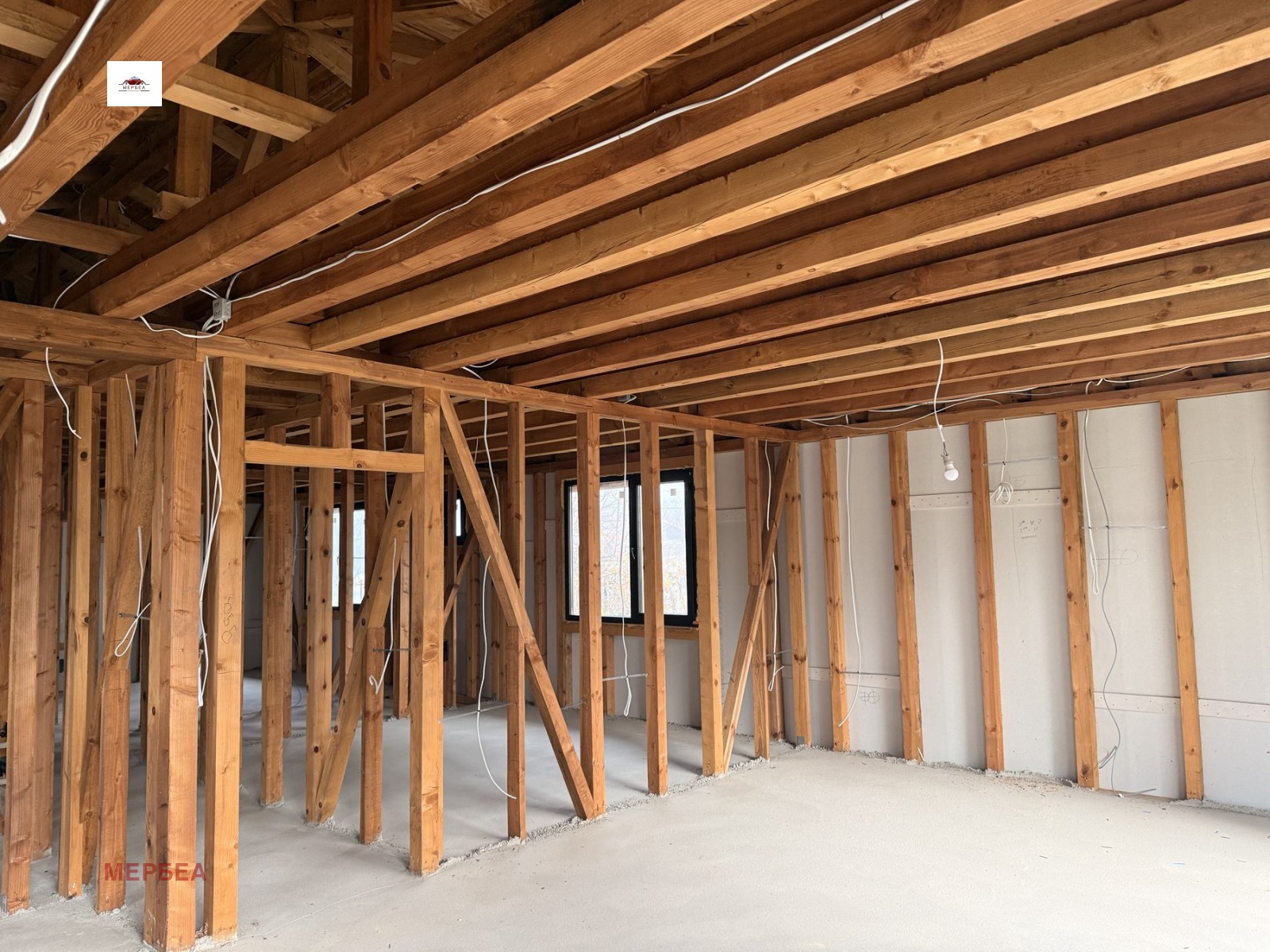 Къщата е покрита, изградено е подово отопление, преградните стени са фиксирани с греди, дограма на всички помещения.Има ток, вода, канализация.Около къщата е изграден дренаж.За повече информация на посочения телефонен номер