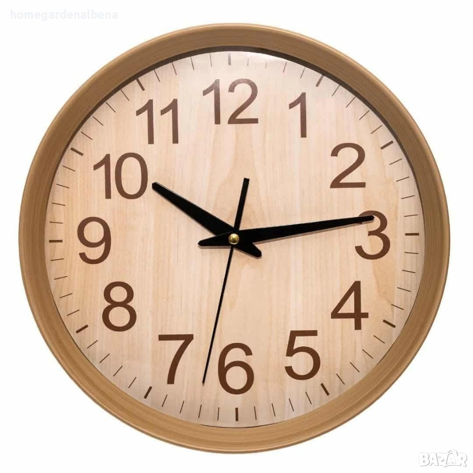 Ключови думи: стенен часовник, кръгъл часовник, бежов часовник, дървесна текстура, кварцов часовник, часовник за хол, часовник за кухня, скандинавски стил, натурален декор, 30 см часовник