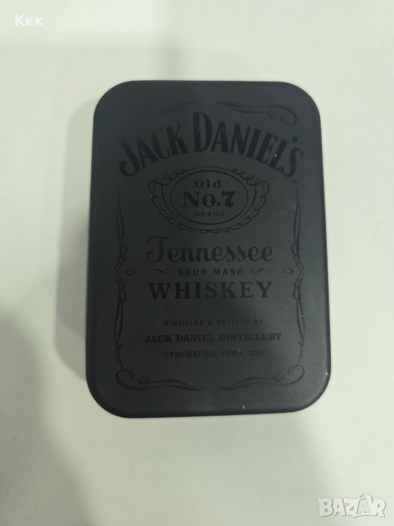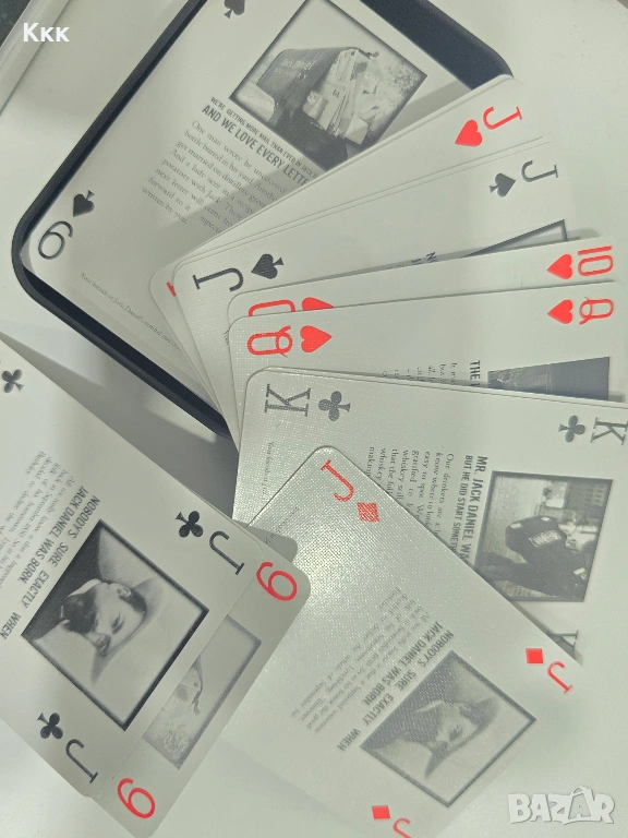 Оригинално, неизползвано тесте карти за игра с марката Джак Даниелс. Карти пресъздават чрез снимки историята на марката. Имат и метална черна кутия за съхранение. Биха били от интерес за колекционери и картоиграчи.