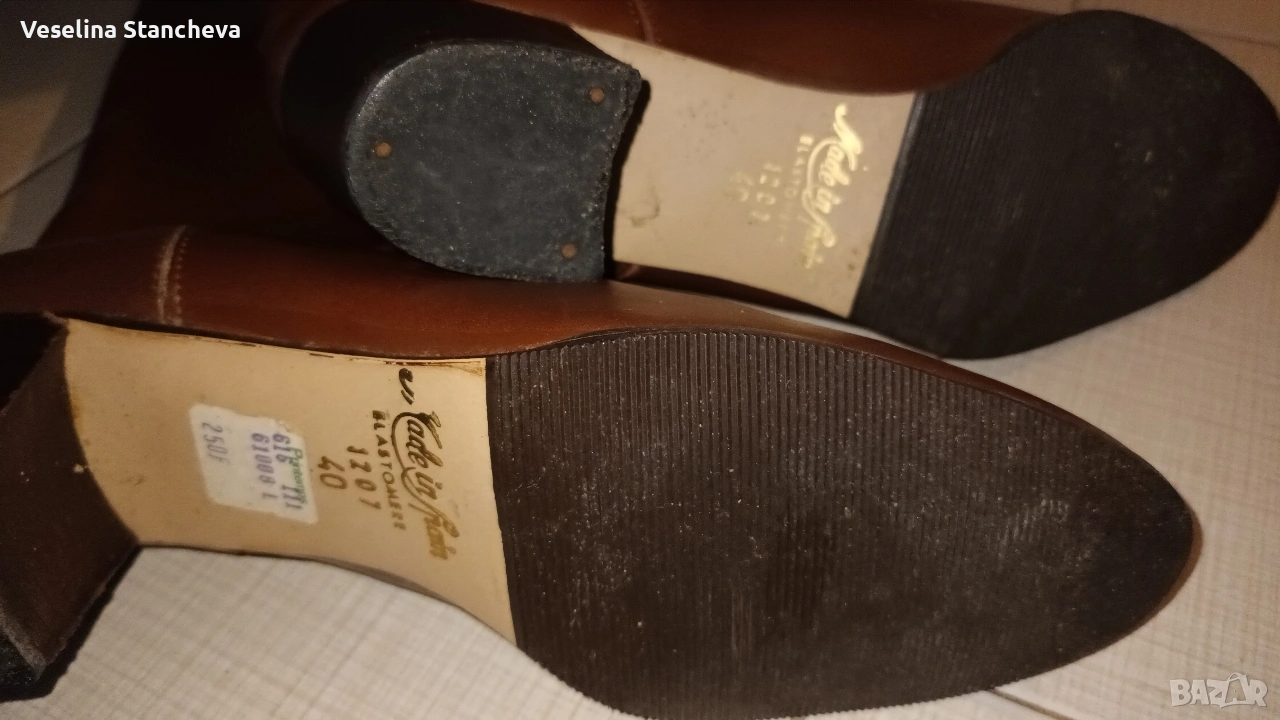 Чисто нови дамски ботуши, закупени от бутиков магазин от Франция. Размер 40 ( умалени са, според мен отговарят на 39). Не са носени. Имат лека забележка от вътрешната страна на ботуша, вижда се от последната снимка, това е от времето, което са стояли неизползвани. Не се забелязва при обуване.