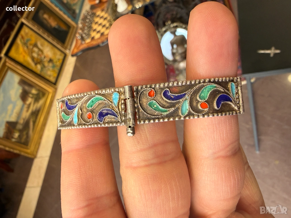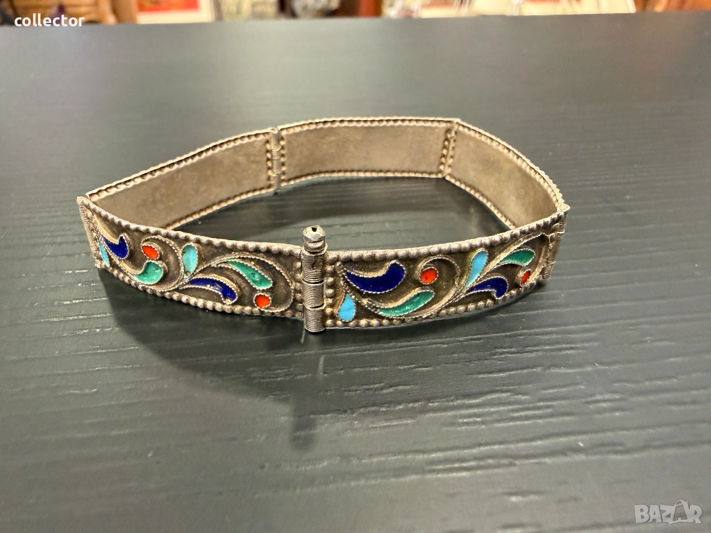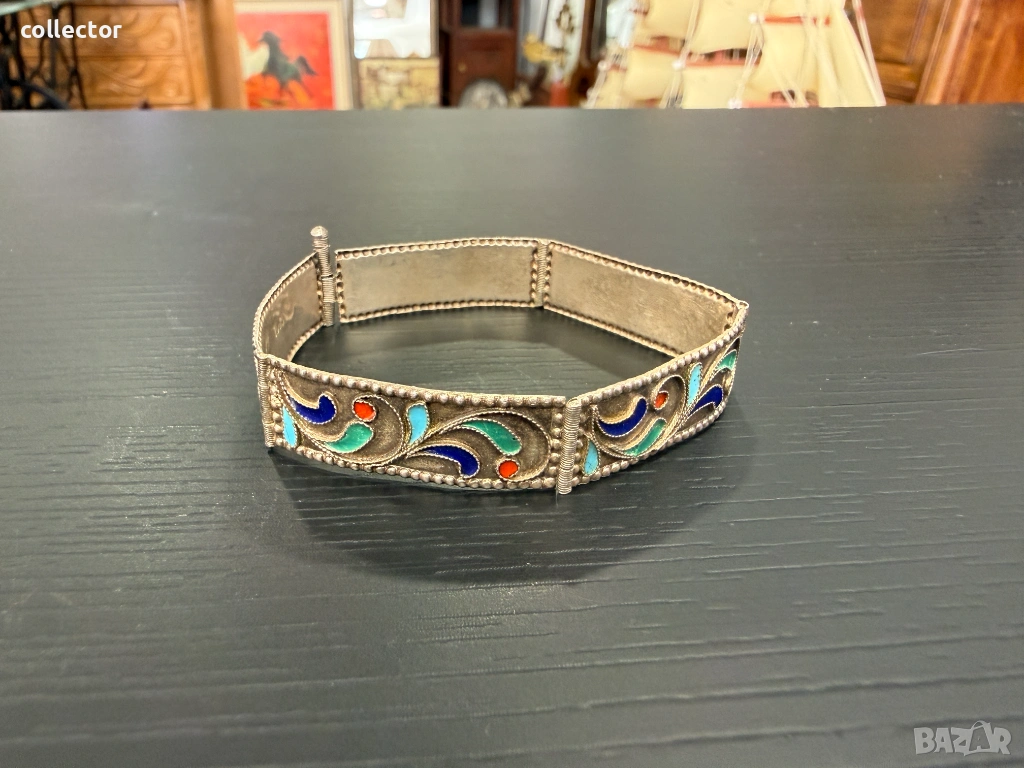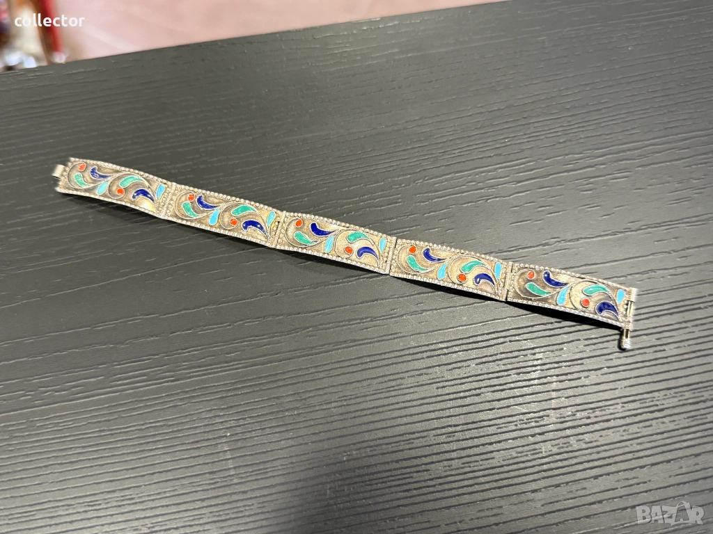 Стара сребърна гривна с многоцветен емайл. №8070 → Обява 54062209