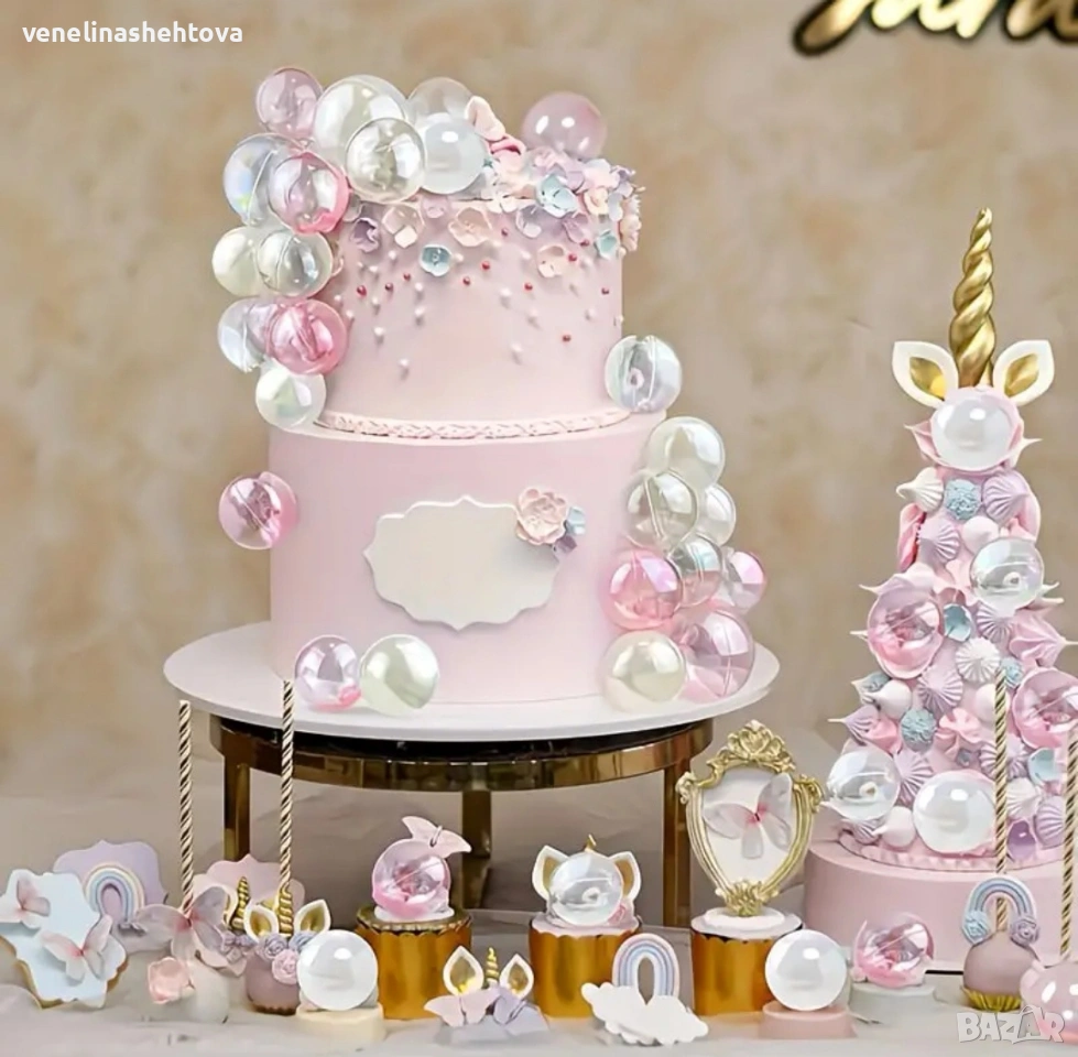 36 броя прозрачни бели розови топчета за декорация на торта , снимка 1 - Други - 54062336 36 броя прозрачни бели розови топчета за декорация на торта , снимка 2 - Други - 54062336 1/2