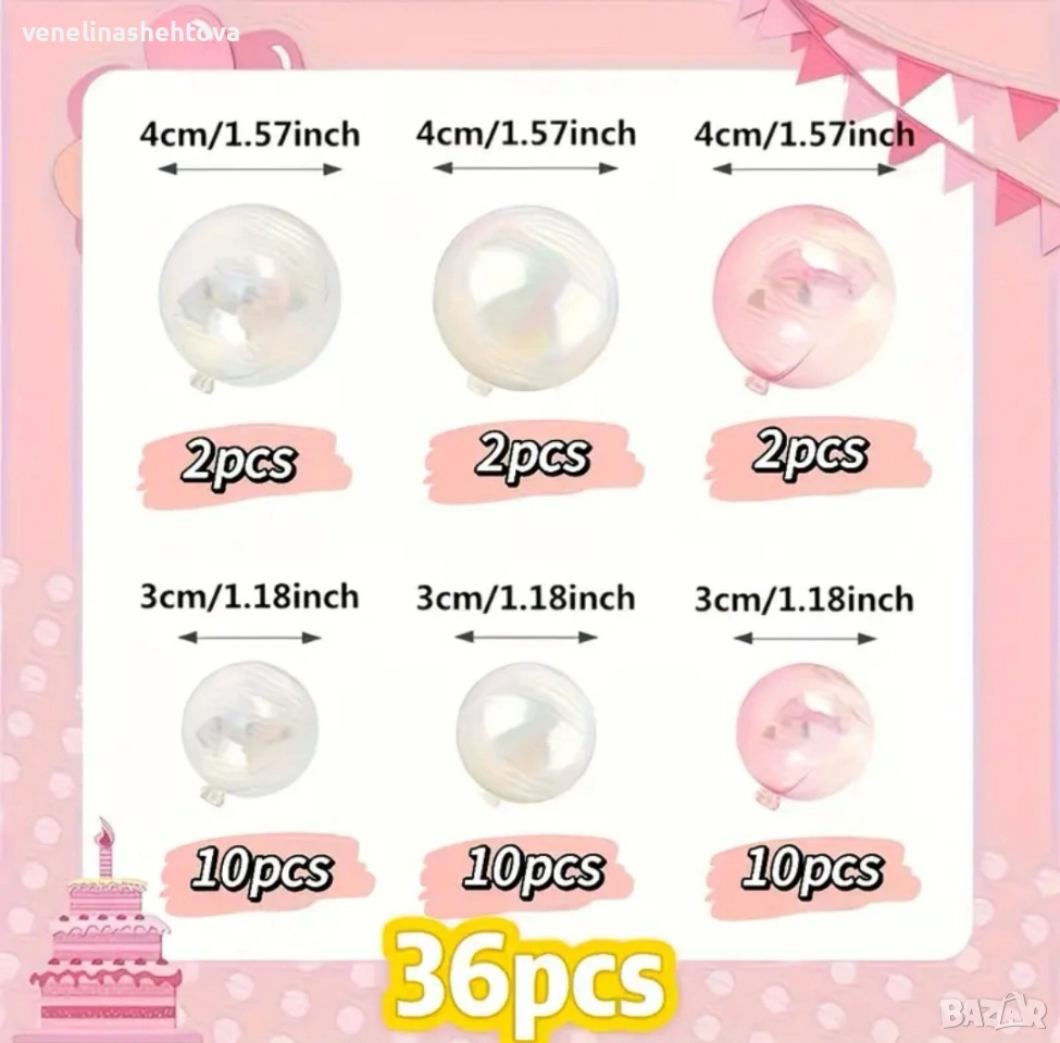 36 броя прозрачни бели розови топчета за декорация на торта → Обява 54062336
