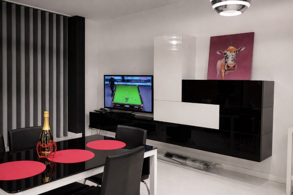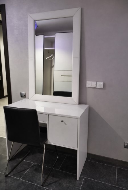 Имотът е обзаведен, с площ 65 кв.м, на 2-ри от 7 етажа в сграда с асансьор. Разпределението включва входно антре, хол с кухня и трапезария, спалня, баня с тоалетна, мокро помещение и тераса.