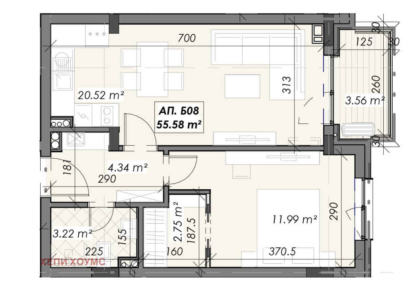 Компания за недвижими имоти Happy Homes Ви представя стилен двустаен апартамент в нова и модерна сграда в кв. Кръстова вада.