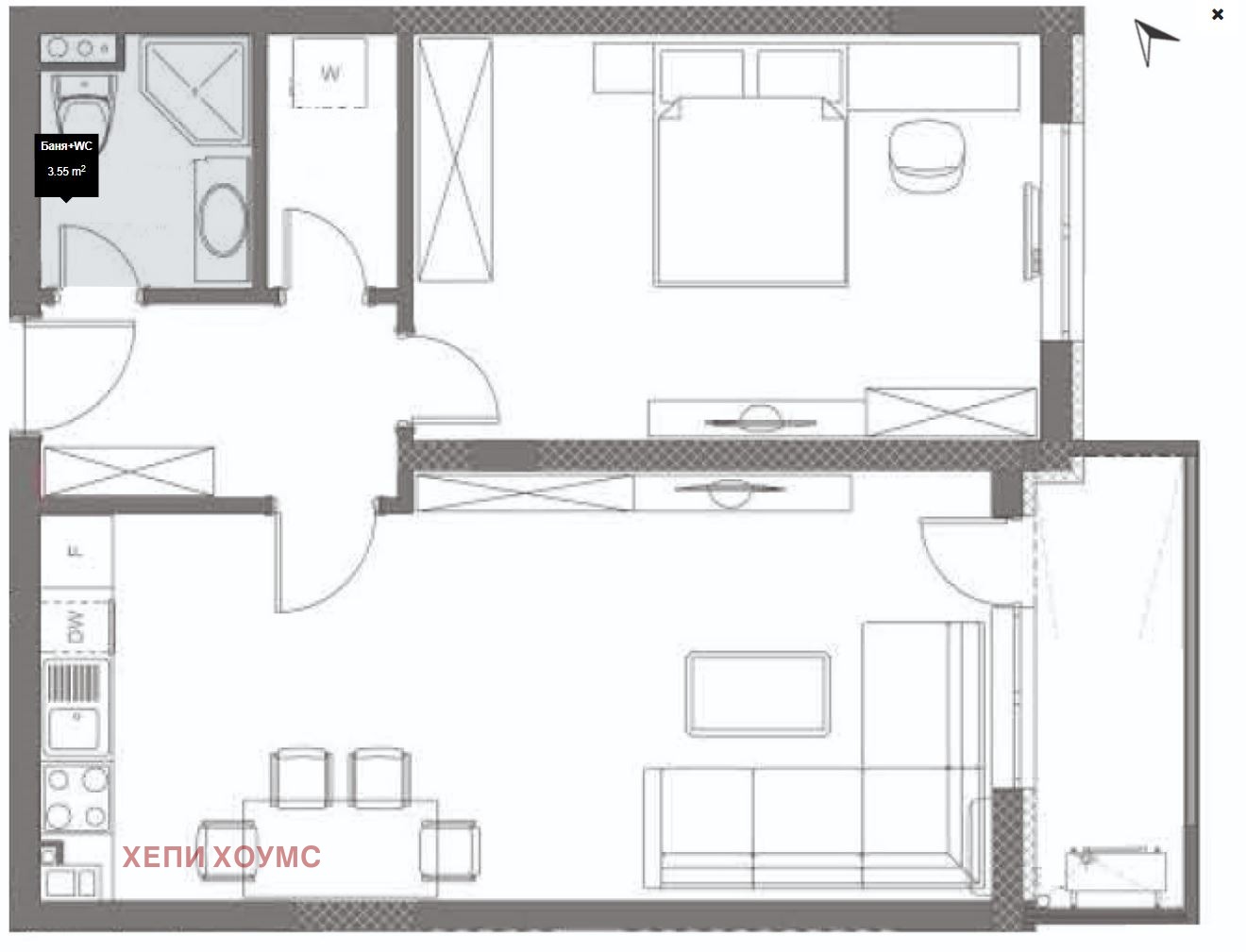 Компания за недвижими имоти Happy Homes представя функционален 2-стаен апартамент в квартал Дървеница. Намира се на 5-ти етаж със североизточно изложение.