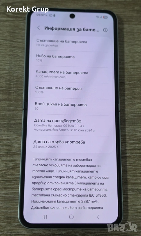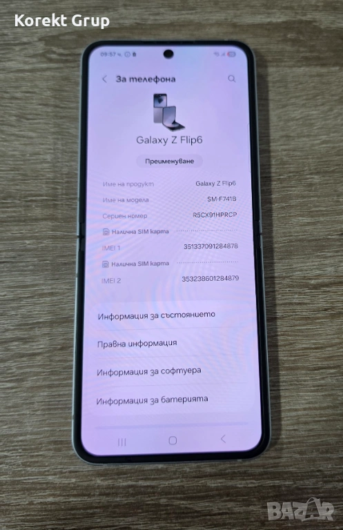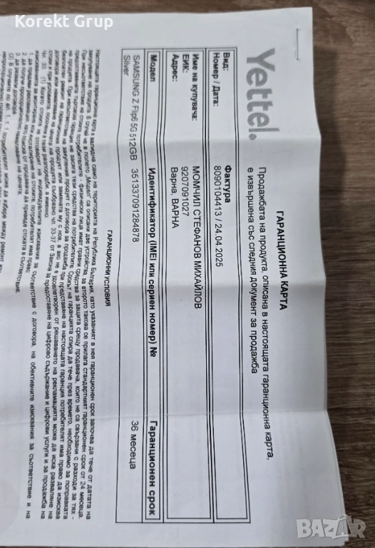 Продавам Samsung Z flip 6 512gb с оставаща гаранция от 2 години към Иетел.Телефона е закупен преди година и се плаща редовно.Продава се защото не се ползва ,на 20 зареждания е.Изпращам по еконт и спиди с опция преглед и тест,за гр.Варна може лично предаване.Без драскотини по дисплеите,има лека пукнатина на стъклото около камерите,което не пречи на работата на телефона.Цената е съобразена със състоянието на телефона.В комплект с кутия,гаранция ,кабел за зареждане и кейс.