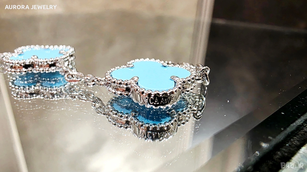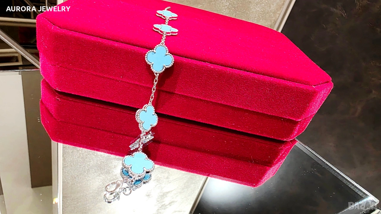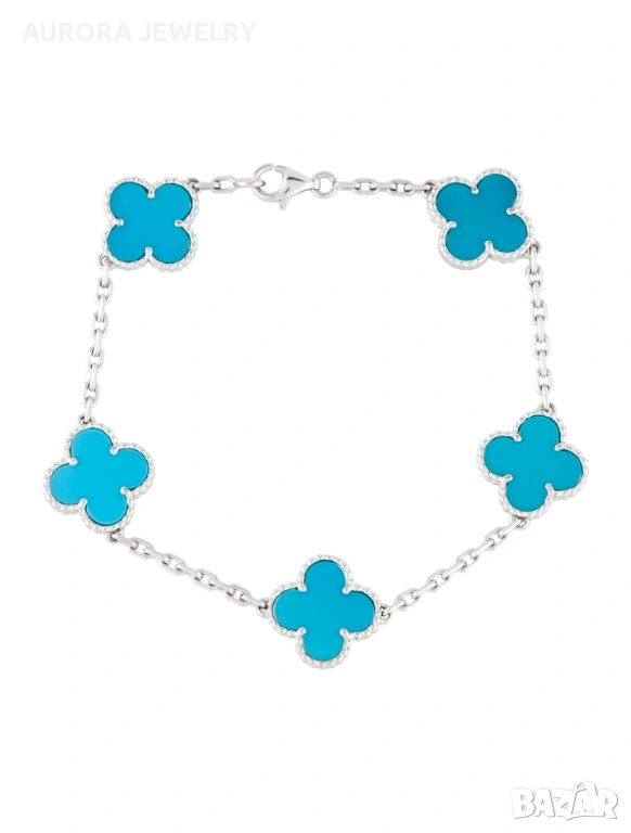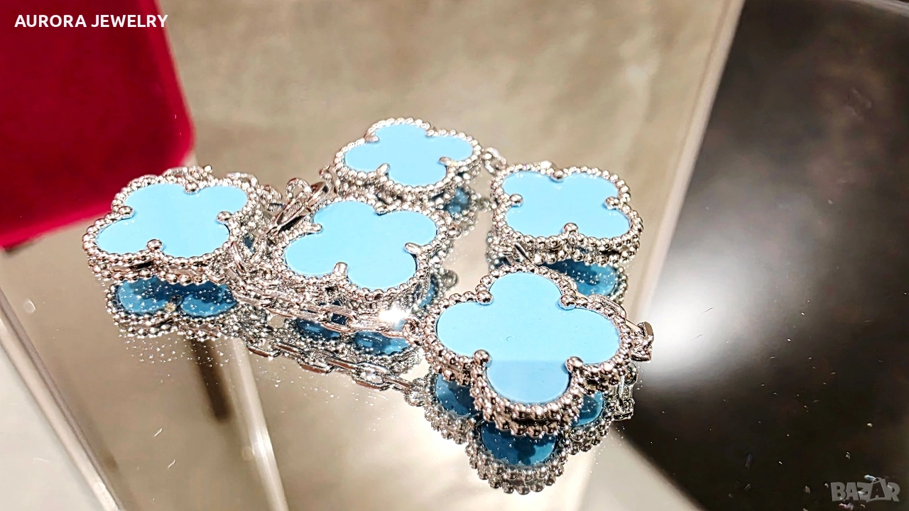 Van Cleef & Arpels VCA 5 Motifs Silver Turquoise Vintage Alhambra Clover Дамска Гривна