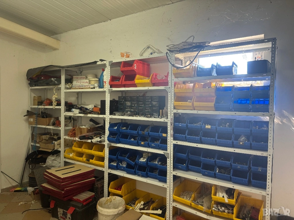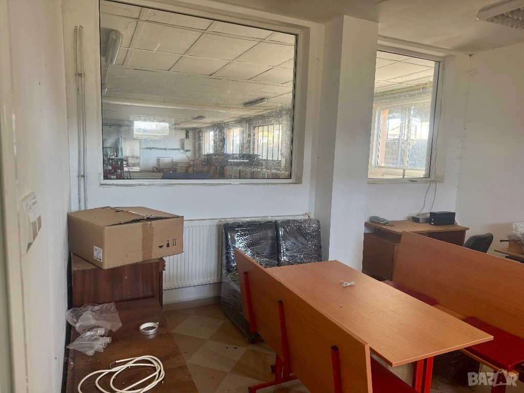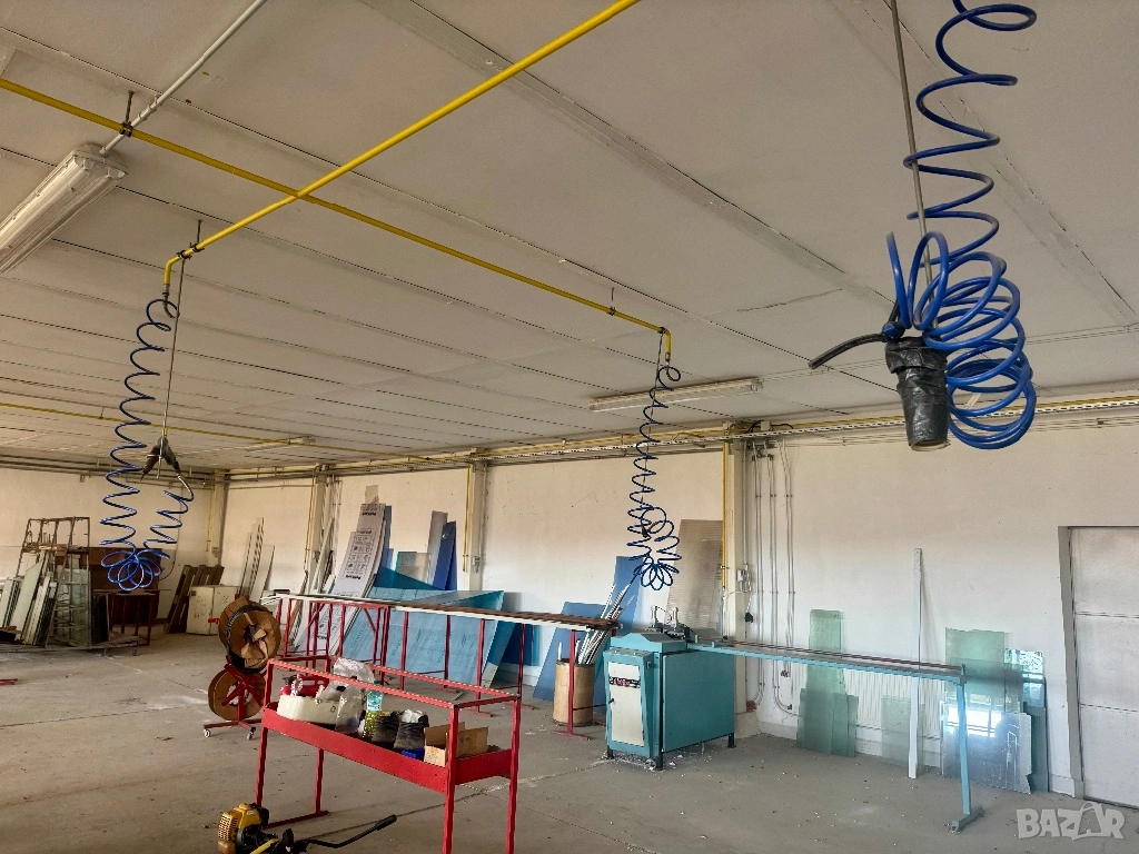 - В едно от помещенията има 5 броя машини за Ал. и ПВЦ дограма и компресор с въздушен поток до всяка машина.