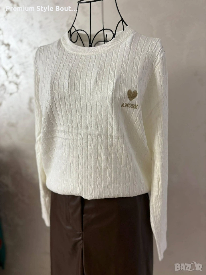 Пуловер с красив бродиран надпис в златисто Машинно плетиво Еластичен Много меко и удобно плетиво Стандарт 20€ нова цена