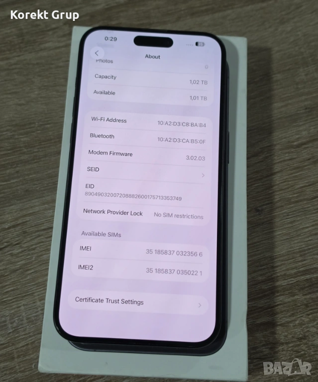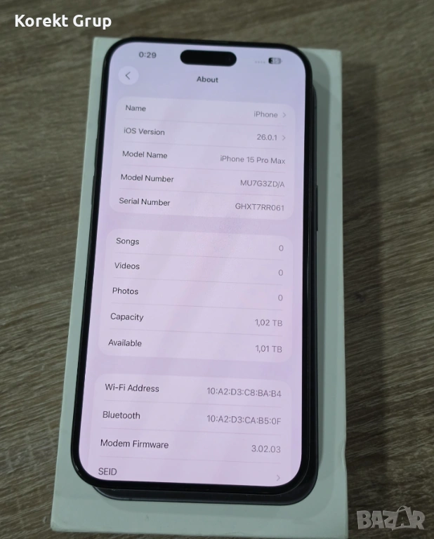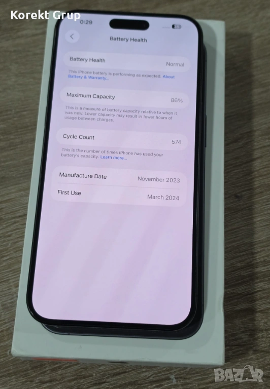 Продавам iPhone 15 Pro Max с впечатляваща вътрешна памет от 1TB. Изключително мощен смартфон, идеален за потребители, които изискват голям капацитет за съхранение на данни.Телефона е без следи от употреба,ползван винаги с протектор и кейс.Батерията е на 86%,ден ползване,без проблем.
