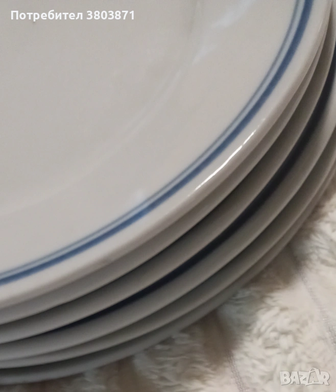 Порцеланови чинии със син кант, снимка 1 - Чинии - 54062999 Порцеланови чинии със син кант, снимка 2 - Чинии - 54062999 Порцеланови чинии със син кант, снимка 3 - Чинии - 54062999 1/3
