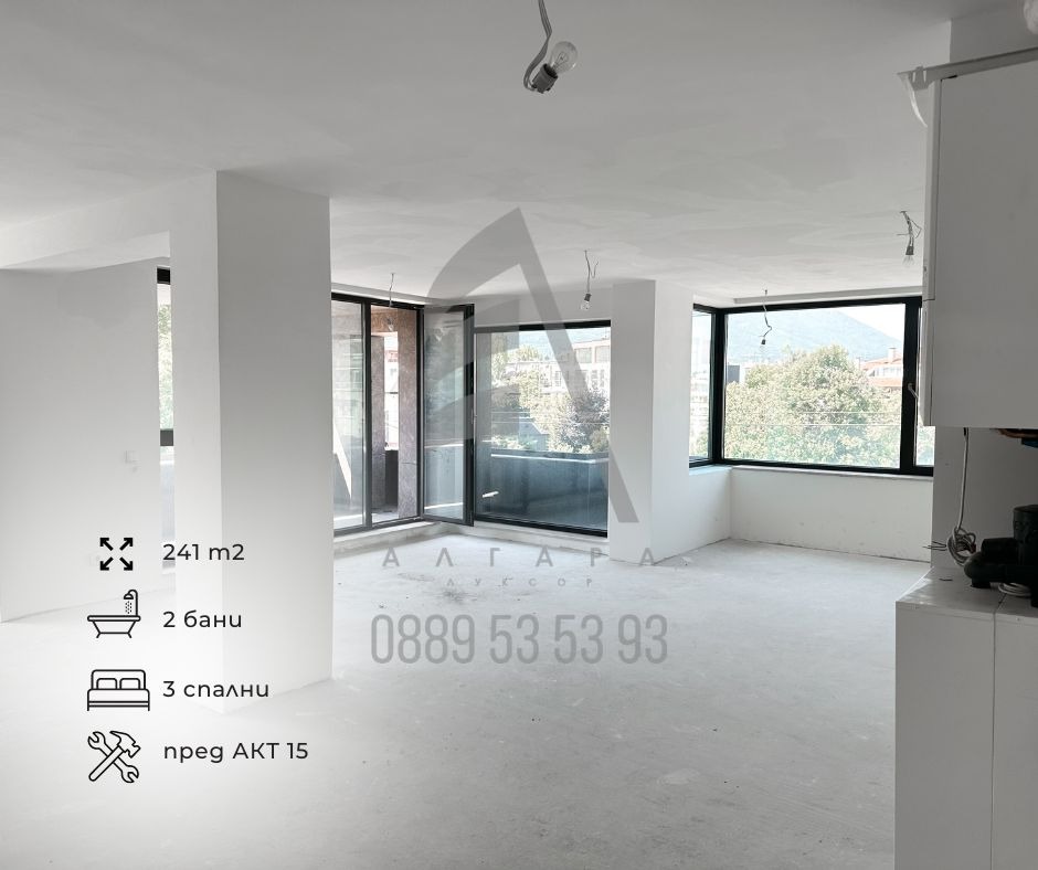 Представяме Ви четиристаен апартамент А2 с обща площ от 241.33 кв.м на ЧЕТВЪРТИ етаж с изложение ЮГ - ЗАПАД и гледка към планина Витоша. Състои се от просторен дневен тракт с излаз към тераса, три спални помещения, едно от които с дрешник, три санитарни помещения и едно мокро помещение. Апартамент с този тип разпределение се предлага и на ПЕТИ етаж.