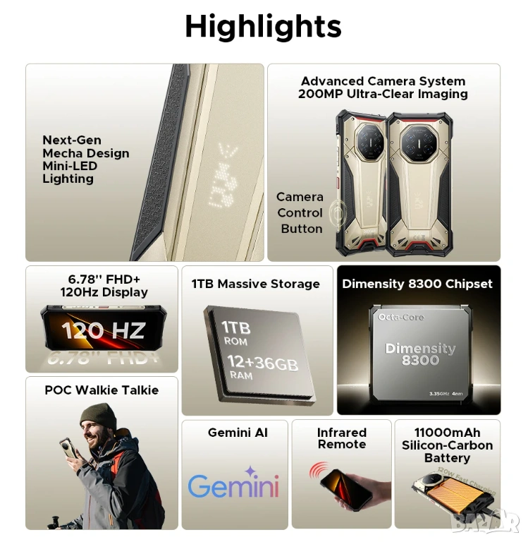 DOOGEE S300 Plus 6.78" 12GB+36GB/1024GB (1TB), Dimensity 8300-Ultra, 200MP, 11000mAh