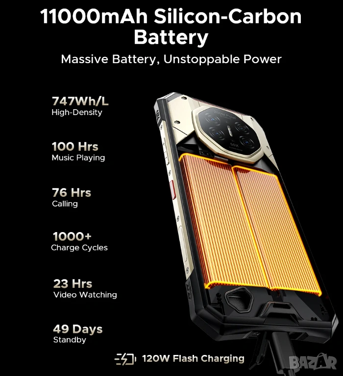 Батерия: 11 000 mAh Silicon-Carbon (Li-Polymer)
