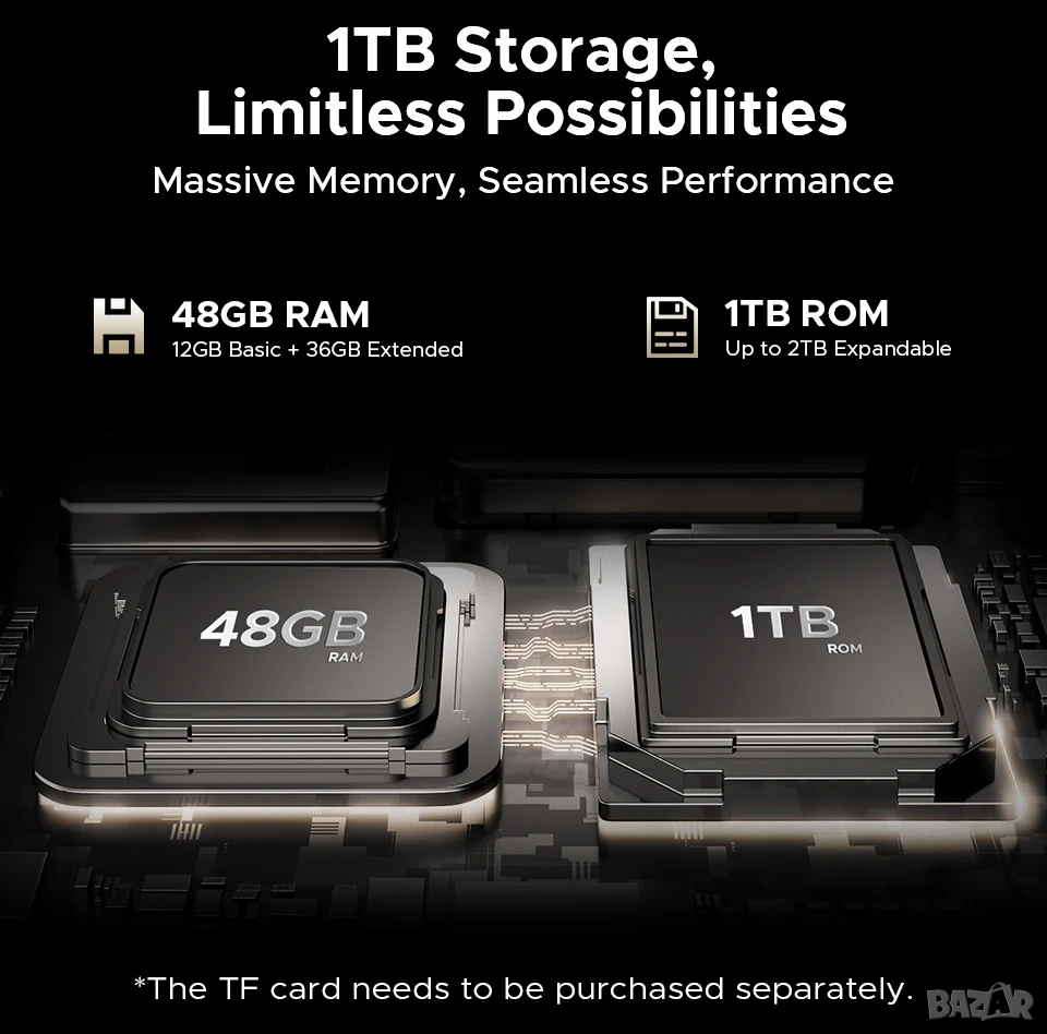 Памет: 12 GB RAM LPDDR5X + 36GB виртуална