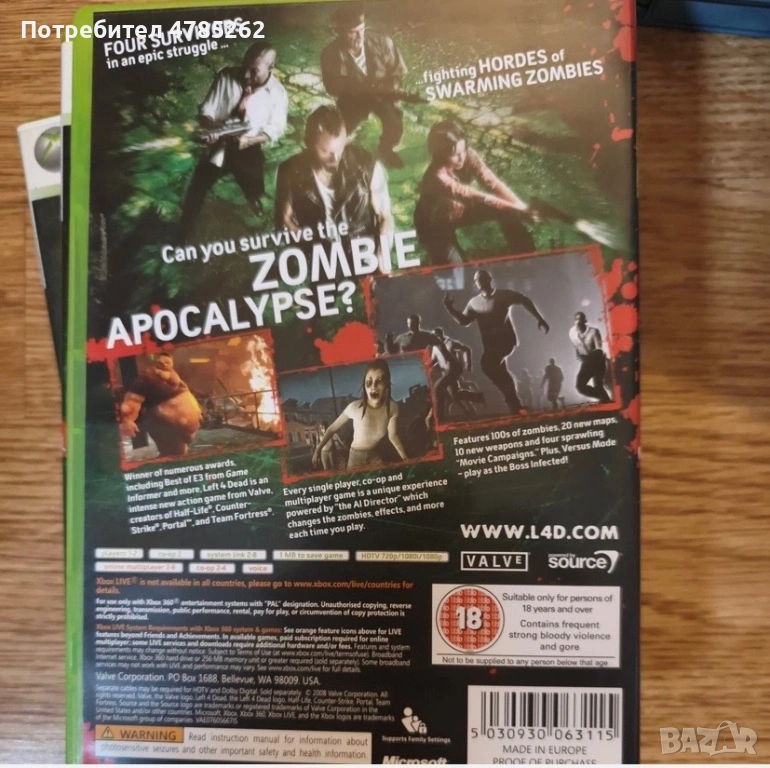 Игра за Xbox 360 left 4 dead xbox one series → Обява 54063121