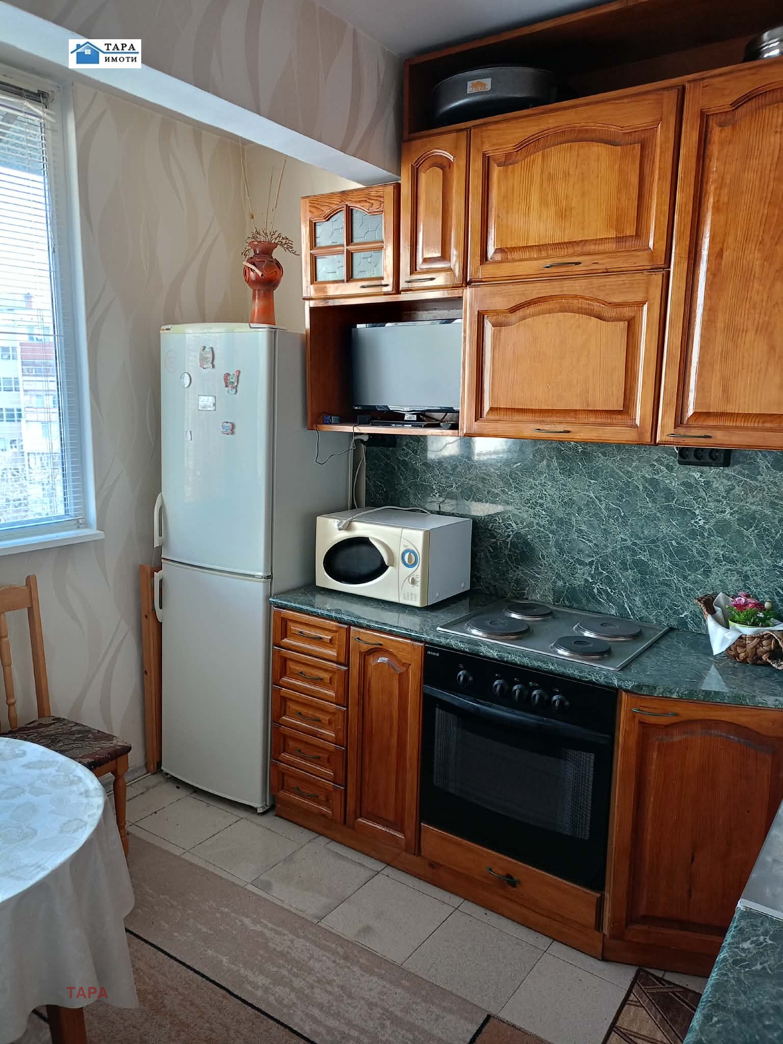 ОТОПЛЕНИЕ- работеща отоплителна инсталация на твърдо гориво с камина в хола и радиатори в кухнята и спалнята.Мазе -4 кв.м.Общите части на сградата са в добро състояние с работещ асансьор и контрол на достъпа.Подходящ за инвестиция и семейно жилище.Имота е с изрядни документи за собственост,без тежести.Агенцията оказва съдействие при закупуване на имота с банков кредит.За справки и огледи тел0887435975, 0886321620