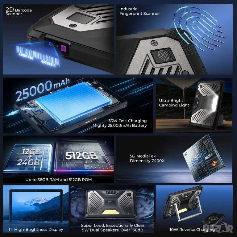 OUKITEL RT10 Industry 5G - 11", 12GB+36GB/512GB, 25000mAh, защита → Обява 54063216