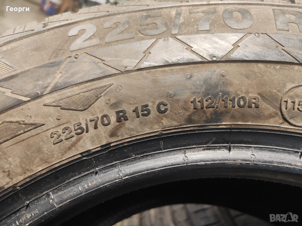 2бр.Continental 225/70/15C , ДОТ 3718, 9.2mm грайфер, цената е за 2бр. Гумите са перфектни, без забележки, проверени са машинно за кривини, балони!! Разполагаме с всякакъв размер нова и втора употреба гуми от 14-22 цола за автомобил, джип и бус.