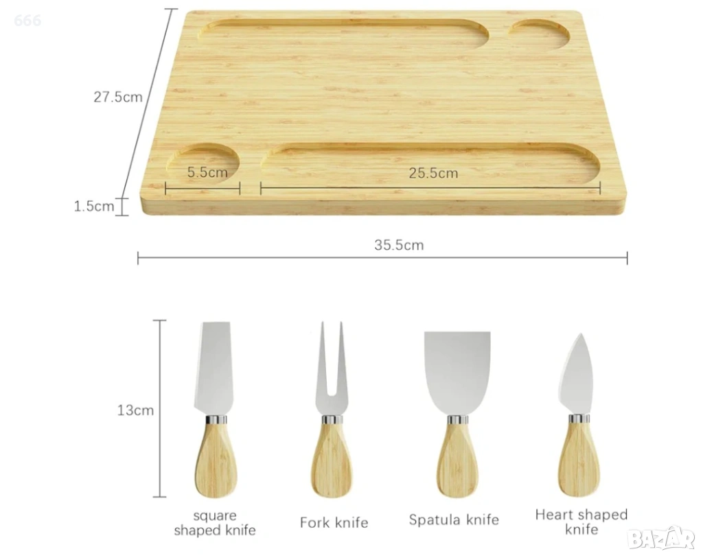 Двойни отделения за сервиране за многостранна употреба – Разполагат с две специално проектирани отделения за удобно съхранение на сирене, плодове, крекери, колбаси и други.