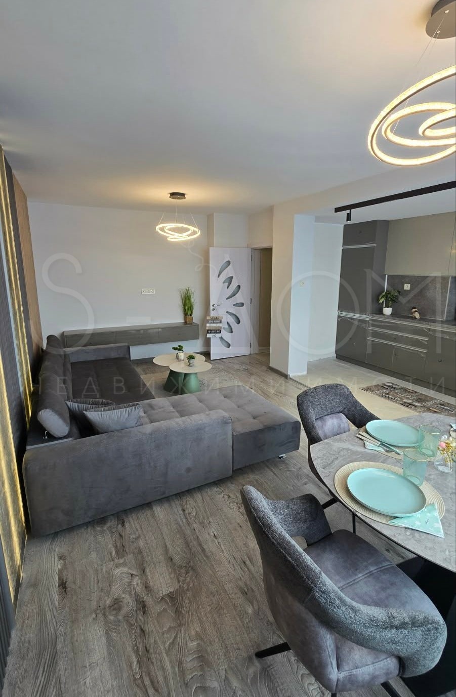 🍽️ Всекидневна с кухненски бокс: Модерно и функционално пространство, напълно обзаведено и оборудвано.