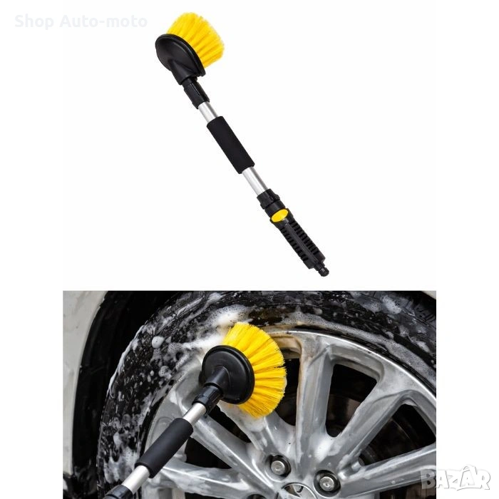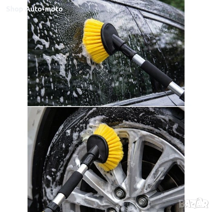 Четката за измиване на автомобил с накрайник за воден маркуч е практично решение за бързо и ефективно почистване. Вграденият бутон за пускане и спиране на водата позволява по-добър контрол и икономия, а меките влакна почистват без риск от надраскване.