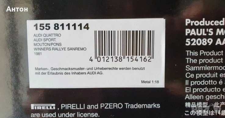 Minichamps Audi Quattro 1/18 Sanremo 1981 155811114 → Обява 54063484
