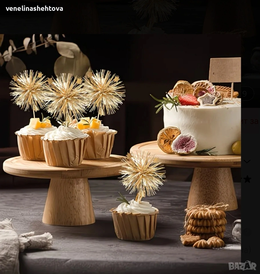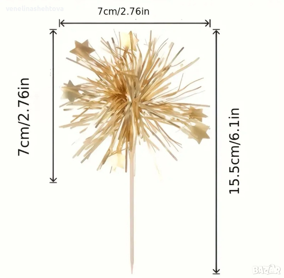 10 броя златисти фолиеви фойерверки на клечка за декорация на торта мъфини кексчета → Обява 54063493